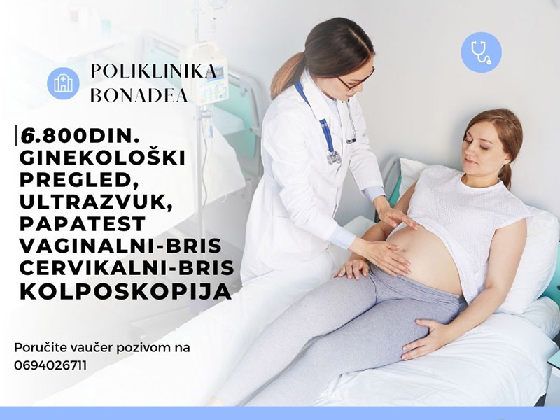 6800 din. za Ginekološki pregled, ultrazvuk, papa test++vaginalni+cervikalni bris+kolposkopija u Poliklinici Bonadea!