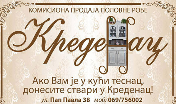 - PONUDA OBUHVATA : 350 din. umesto redovne cene od 500 din. za ZAKUP POLICE za 7 dana u trgovini na malo polovnom robom "Kredenac-Peraš II" Pap Pavla 38, u Novom Sadu!